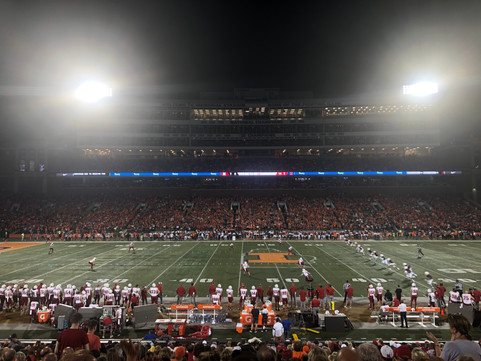 Enjoyable in-game fun. A tailgate that looked like it could have been a great experience. Lots of bad defense and YAC. Loved every second of it. Cannot really opine on the city or campus or town. In and out on this one.